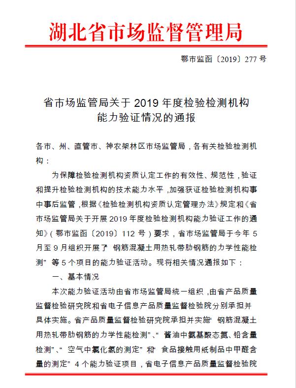 省市場(chǎng)監(jiān)管局關(guān)于2019年度檢驗(yàn)檢測(cè)機(jī)構(gòu) 能力驗(yàn)證情況的通報(bào)